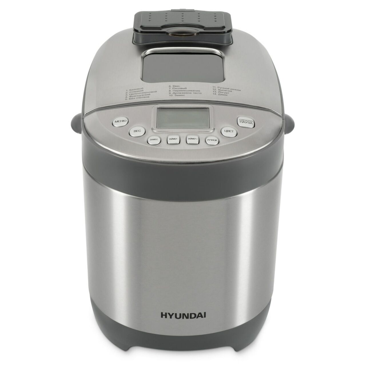 Хлебопечь Hyundai HYBM-4082 серебристый (550 Вт, макс. вес - 1000 г, количество программ - 14)