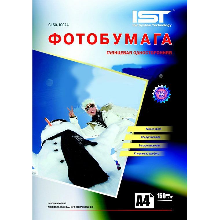 Фотобумага IST, A4, 150 гр/ м2, 50л, G150-50A4, глянцевая, односторонняя, (G150-50A4) для струйной печати