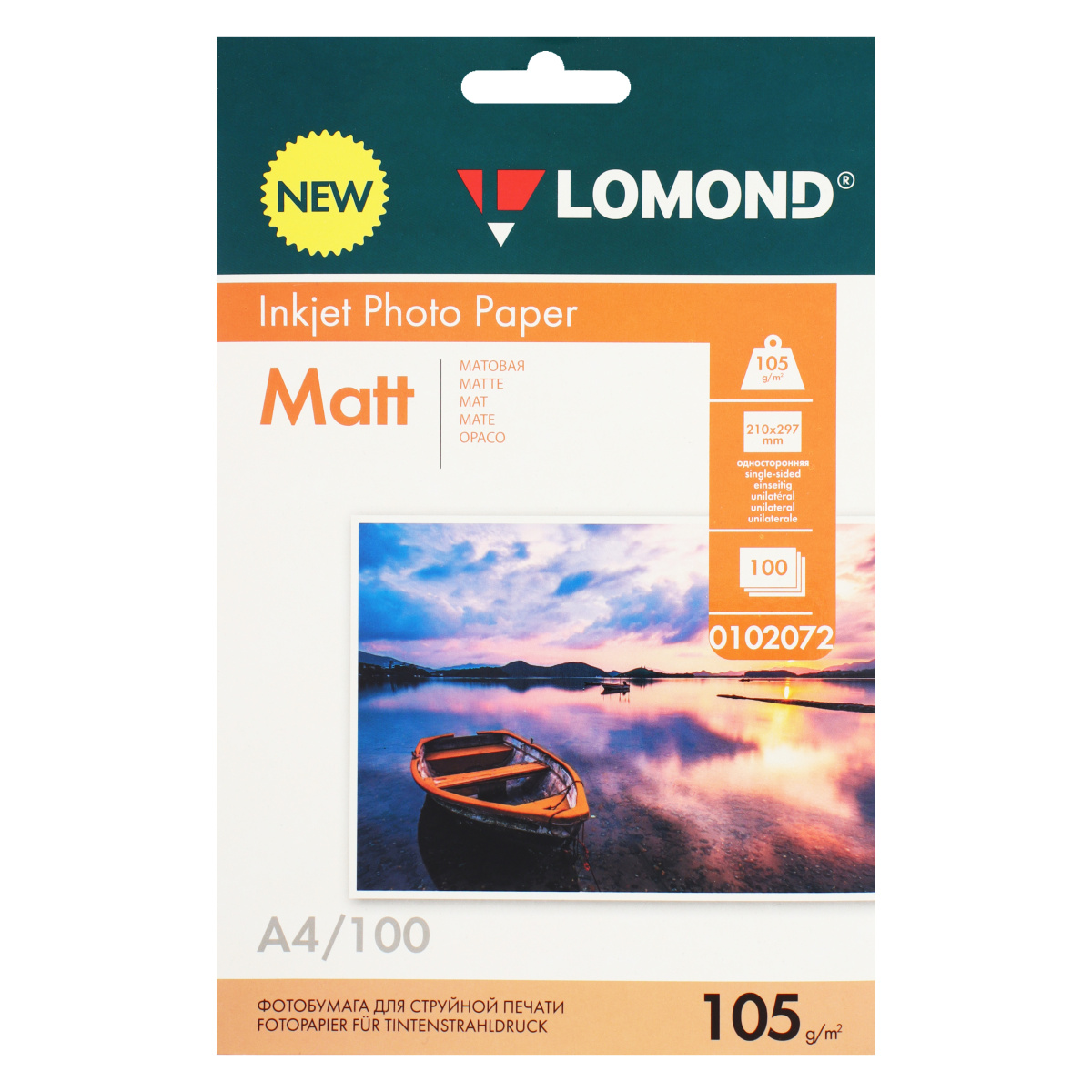 Фотобумага Lomond, A4, 105 гр/ м2, 100л,односторонняя,матовая