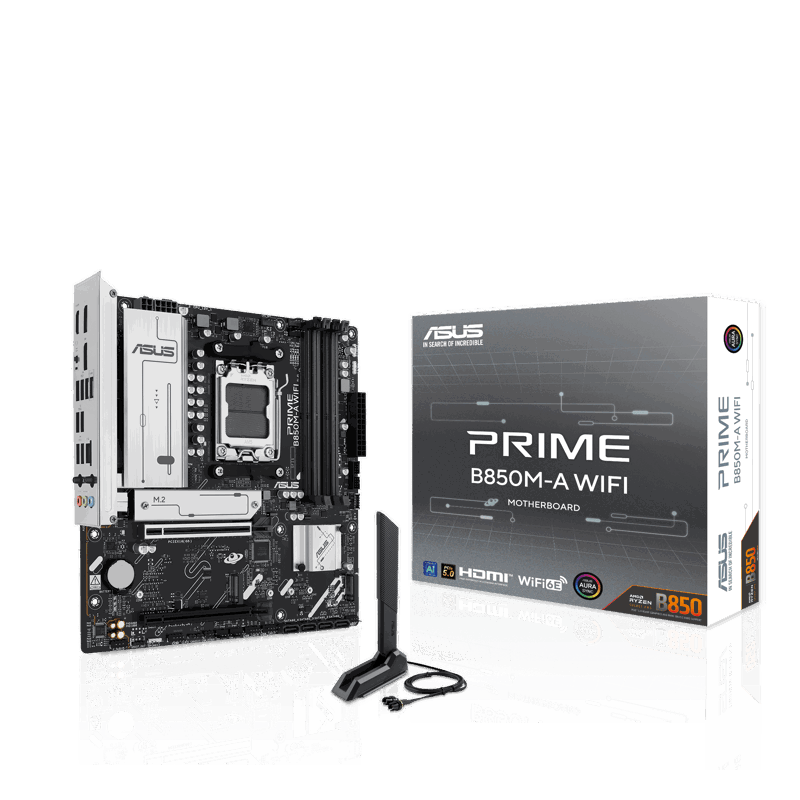 Материнская плата Asus AM5: PRIME B850M-A WIFI [B850, 4*DDR5, 4*PCIx16, 4*SATA3, 3*M2, 4*USB 2, 4*USB 3, HDMI, DP, Micro-ATX]