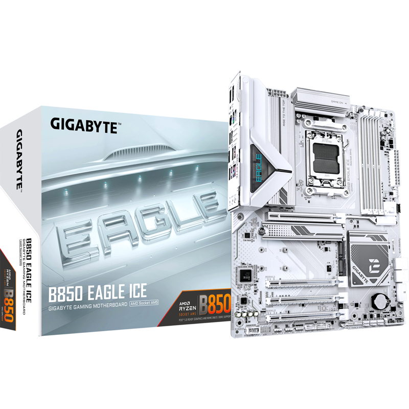 Материнская плата Gigabyte AM5: B850 EAGLE ICE [B850, 4*DDR5, 4*Sata3, 3*PCI Ex16, 3*M.2, 8*USB 2, 8*USB3, DP, HDMI, PS/ 2, ATX]