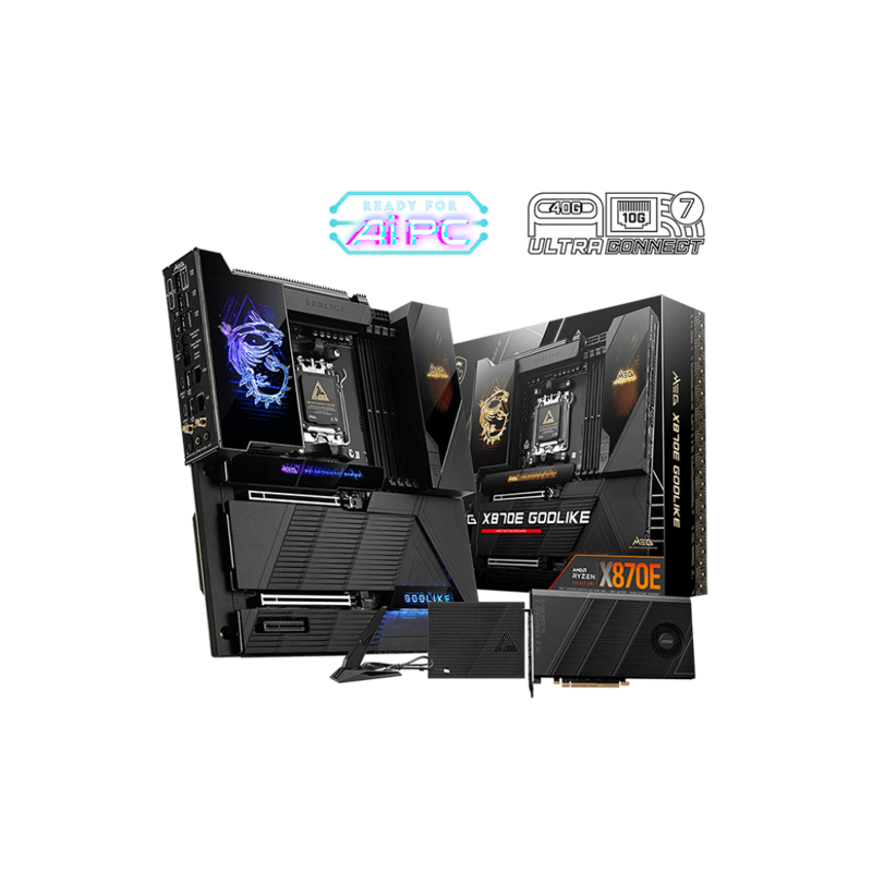 Материнская плата Msi AM5: MEG X870E GODLIKE [AMD X870E, 4хDDR5, 1хPCIe16, 1хPCIe4, 4хSATA3, 5хМ2, 8xUSB3, E-ATX]