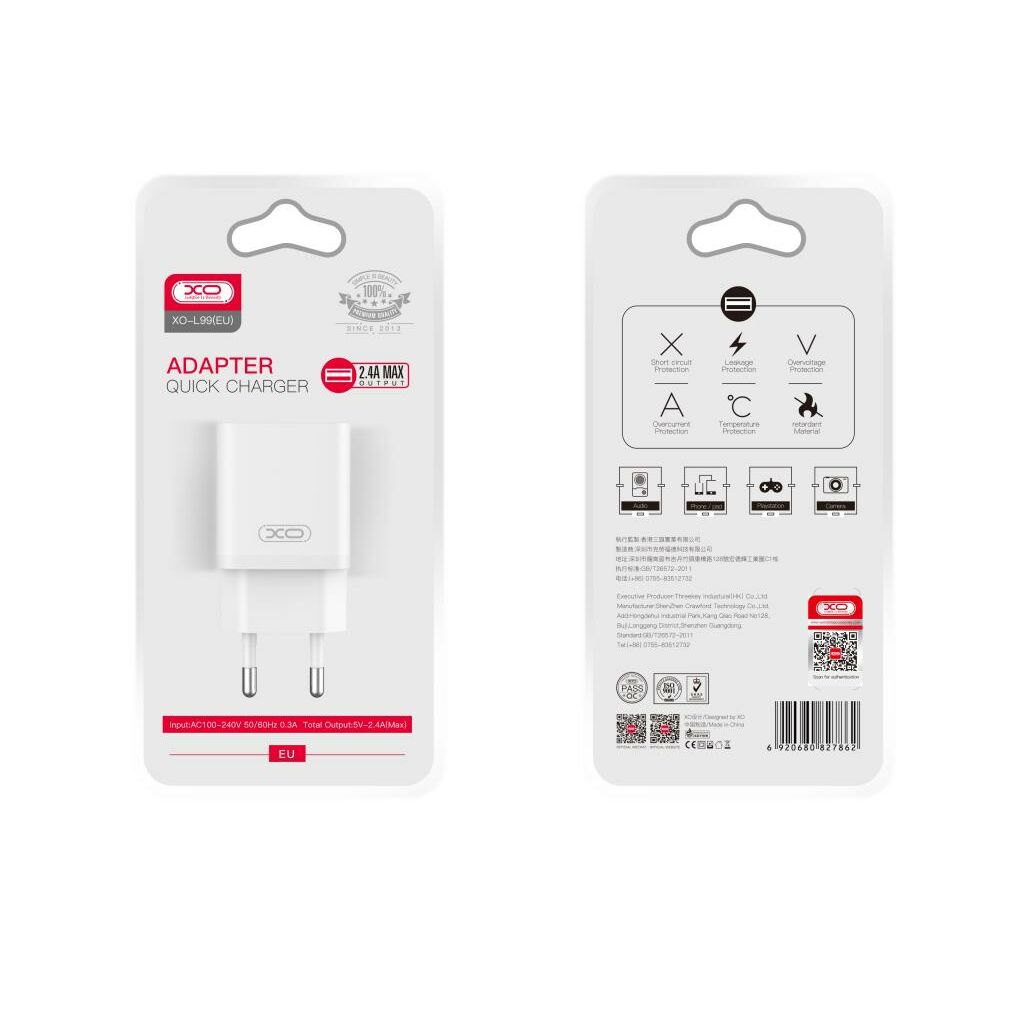 СЗУ -XO- 2.4А 1xUSB (L99, белый)
