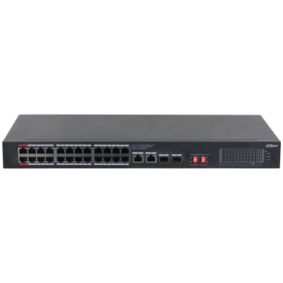 Неуправляемый POE-коммутатор 28 портов Dahua DH-S3228-24GT-240 ( 26x1Гбит/ с, 2xSFP, 24xPOE, PoE‑бюджет 240 Вт) корпус - металл