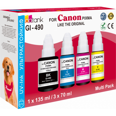 Чернила Canon GI-490 (B*135мл, C/ M/ Y*70мл) Revcol,UV Ультрастойкие, комплект 4 цвета